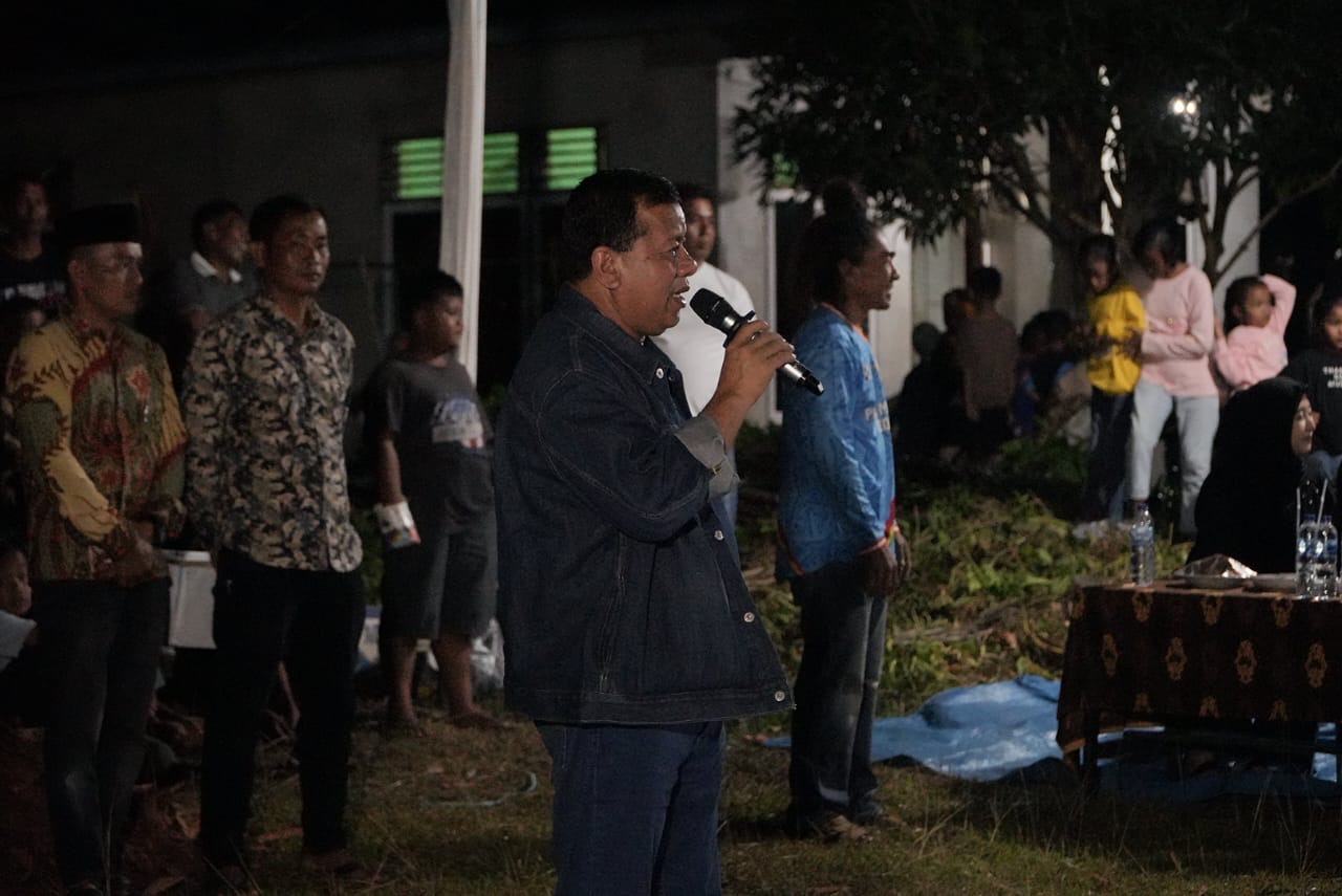 Cerenti - Bupati Kuantan Singingi Dr. H. Suhardiman Amby, MM mengapresiasi Masyarakat Desa Pulau Jambu, Meski Sempat Diguyur Hujan, Tetap Tumpah Ruah Untuk Melayur Jalur di Desa nya, Rabu 26/11/2025 malam