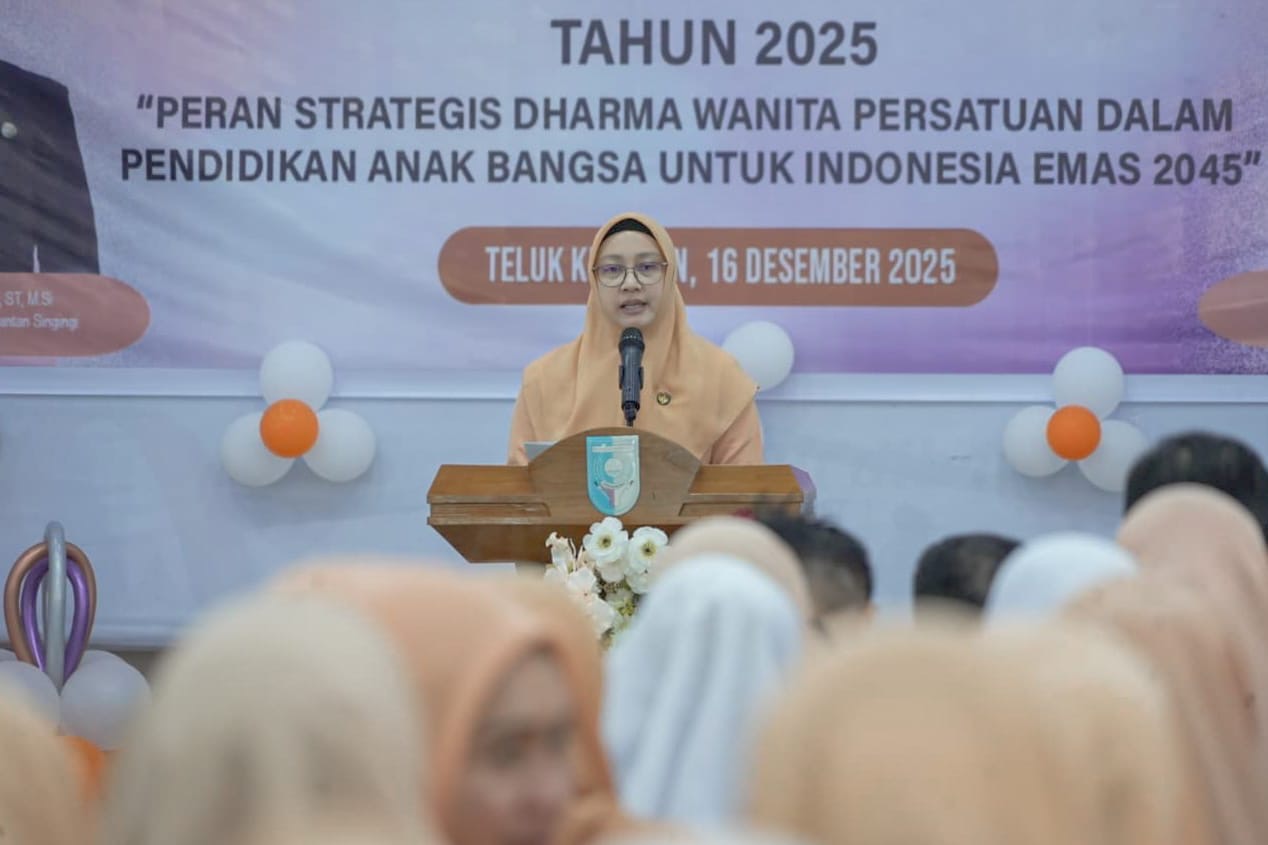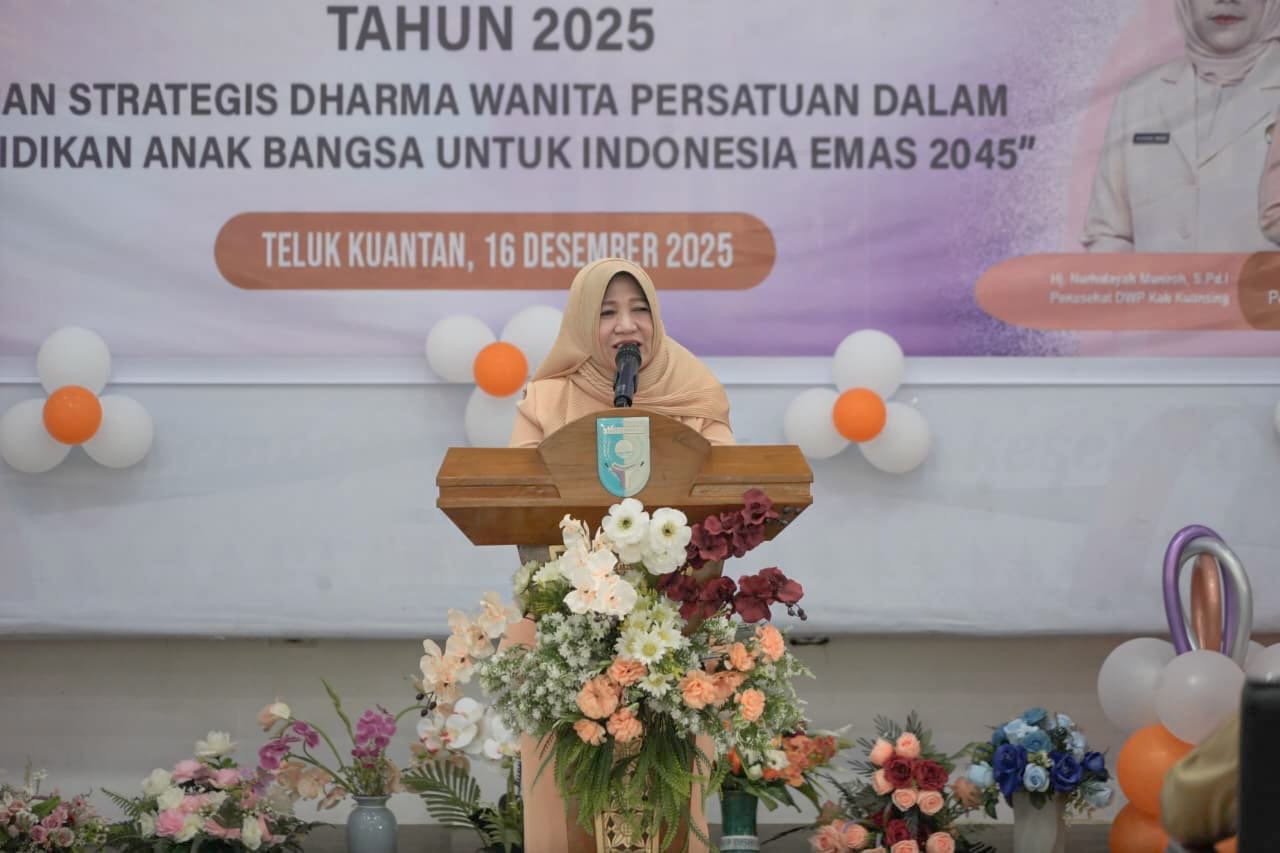 Teluk Kuantan – Penasehat Dharma Wanita Persatuan (DWP) Kuansing Hj. Yulia Herma Suhardiman, mengajak seluruh anggota DWP dan masyarakat untuk terus menanamkan kepedulian menjaga lingkungan kepada anak cucu dan kemenakan. Hal itu disampaikannya saat menghadiri peringatan HUT DWP Kuansing ke-26, Selasa (16/12/2025) pagi, yang mengusung tema “Peran Strategis DWP dalam Pendidikan Anak Bangsa untuk Indonesia Emas 2045.”