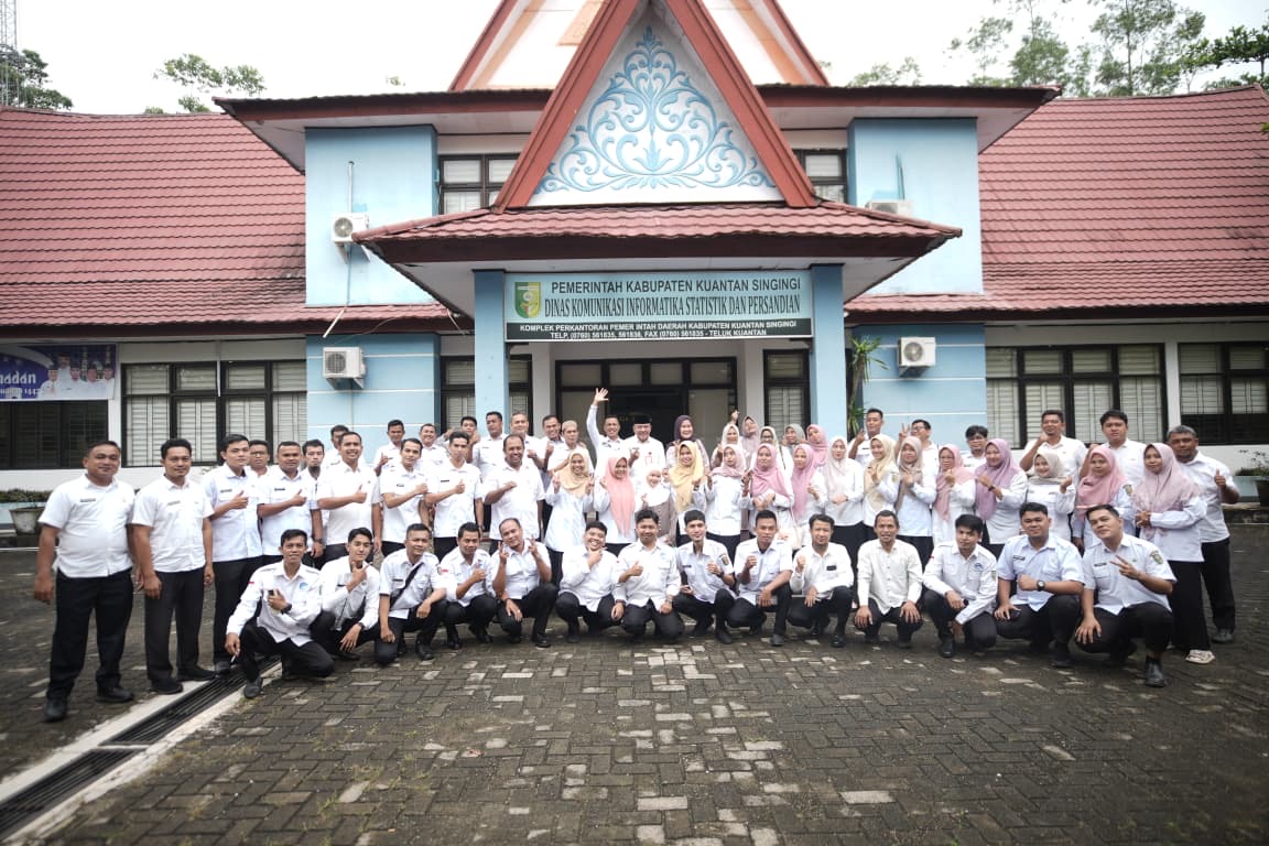 Teluk Kuantan – Kepala Dinas Kominfo Kuansing, H. Doni Aprialdi, SH, MH, didampingi Sekretaris Hevi H. Antoni serta seluruh Kepala Bidang, seperti Toto Priwandoyo, Reno Sungkar, dan Saptudis, menggelar kegiatan Halal Bihalal dalam suasana penuh kekeluargaan dan kebersamaan. Kegiatan yang berlangsung sederhana tersebut tetap sarat makna.