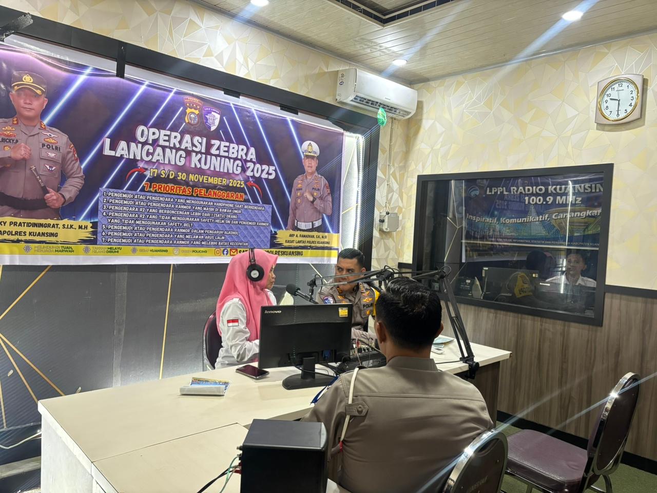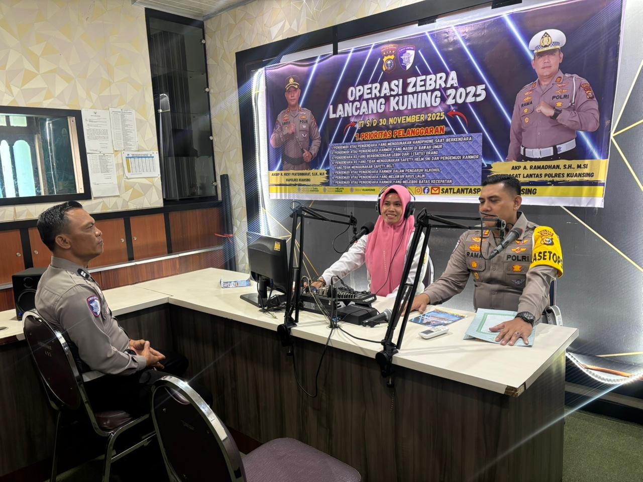 Kuansing — Kapolres Kuantan Singingi (Kuansing) AKBP Raden Ricky melalui Kasat Lantas AKP A. Ramadhan, SH, MSi, menggelar Sosialisasi Operasi Zebra Lancang Kuning 2025 melalui siaran Radio Kuansing FM pada Rabu, 19/11/2025 pagi.
