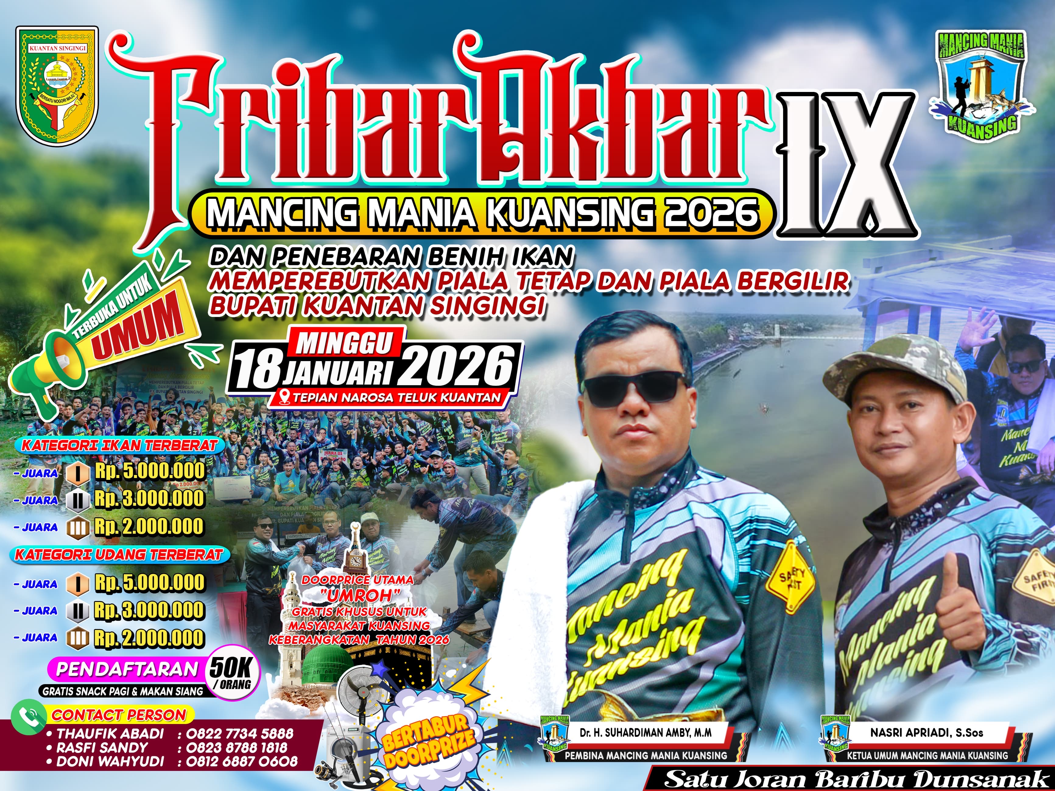 Tak tanggung-tanggung, lomba tersebut akan memperebutkan hadiah menarik, salah satunya Grand Doorprize Paket Umroh dari Bupati Kuantan Singingi, Dr. H. Suhardiman Amby, dan ada juga total hadiah lainnya 20 juta, Hal itu disampaikan Ketua Umum MMK Kuansing, Nasri Apriadi, S.Sos kepada media, Kamis (8/1/2026) di Teluk Kuantan.