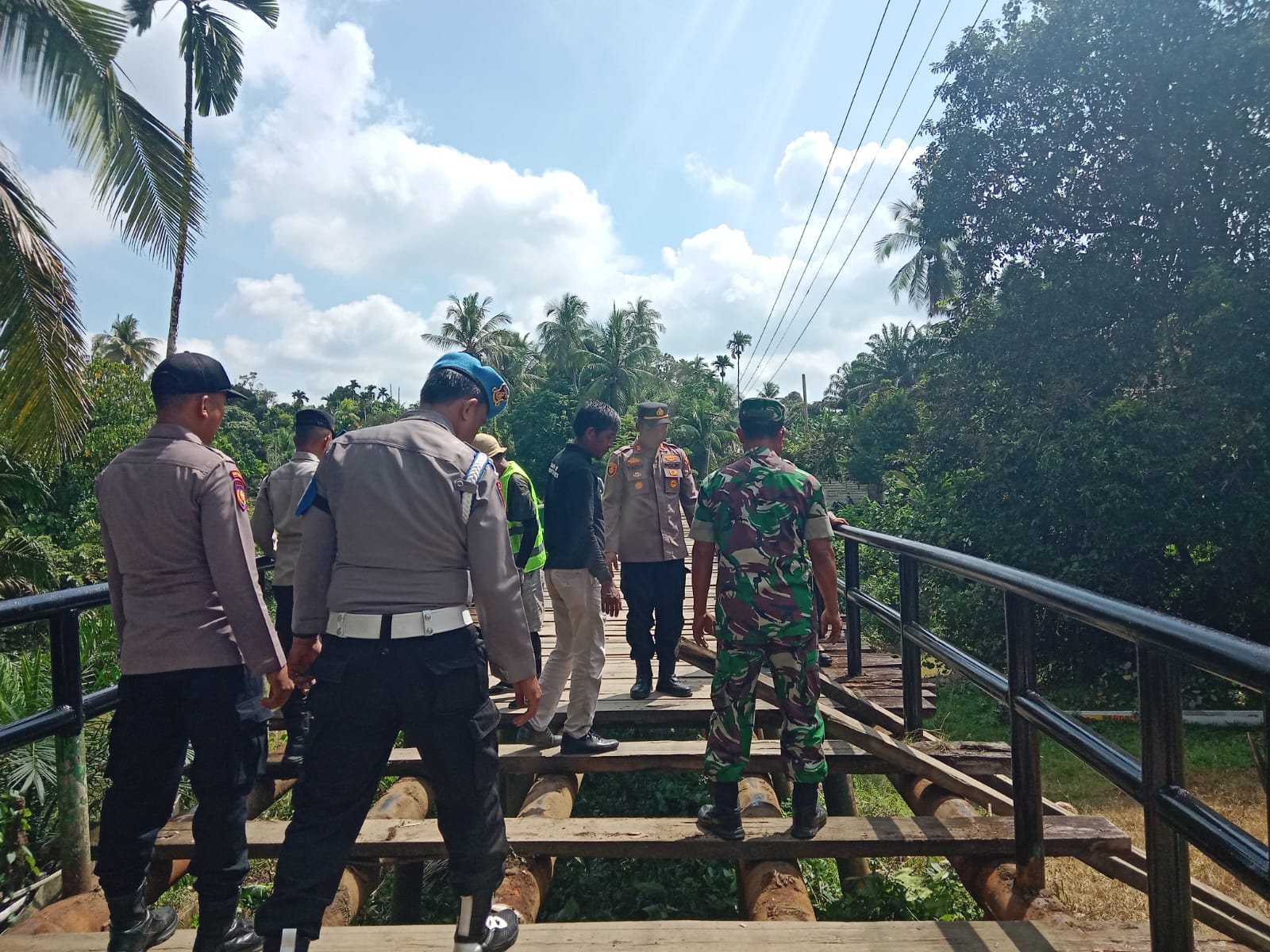 KUANTAN MUDIK — Bupati Kuantan Singingi (Kuansing), Dr. H. Suhardiman Amby, mengapresiasi langkah cepat Polres Kuansing dalam melakukan pemeliharaan lantai Jembatan Desa Sangau, Kecamatan Kuantan Mudik.