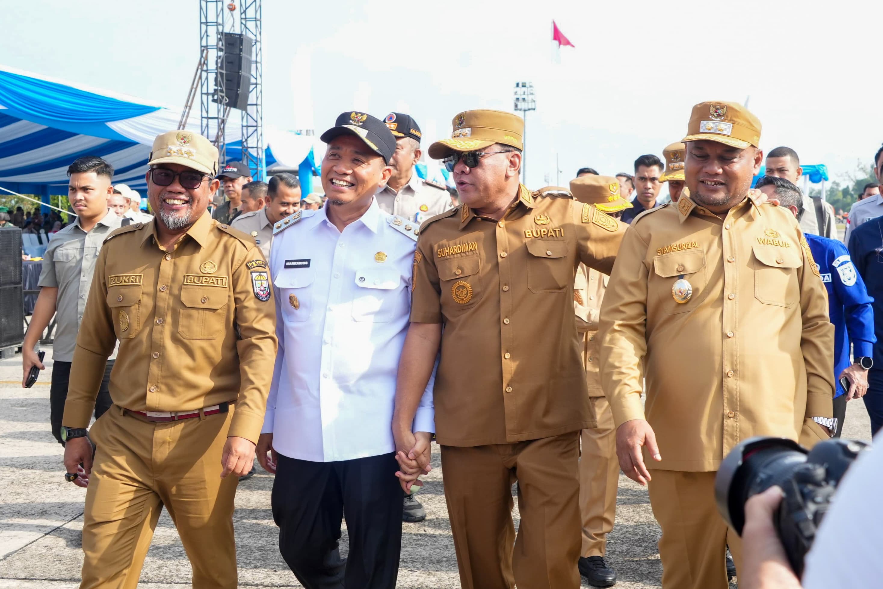 Dari Kabupaten Kuantan Singingi, hadir Bupati Kuansing, Suhardiman Amby, didampingi Kapolres Kuansing AKBP Hidayat Perdana, Dandim 0302/Inhu–Kuansing Letkol Arh Bangun Bara Kurniawan Pranowo, SE, M.IP, Kepala BPBD Kuansing H Yulizar, Plt Kepala Satpol PP Rio Kasyter Wandra, Kabag Umum Deswan Antoni, serta Sekretaris Kominfo Hevi H Antoni.