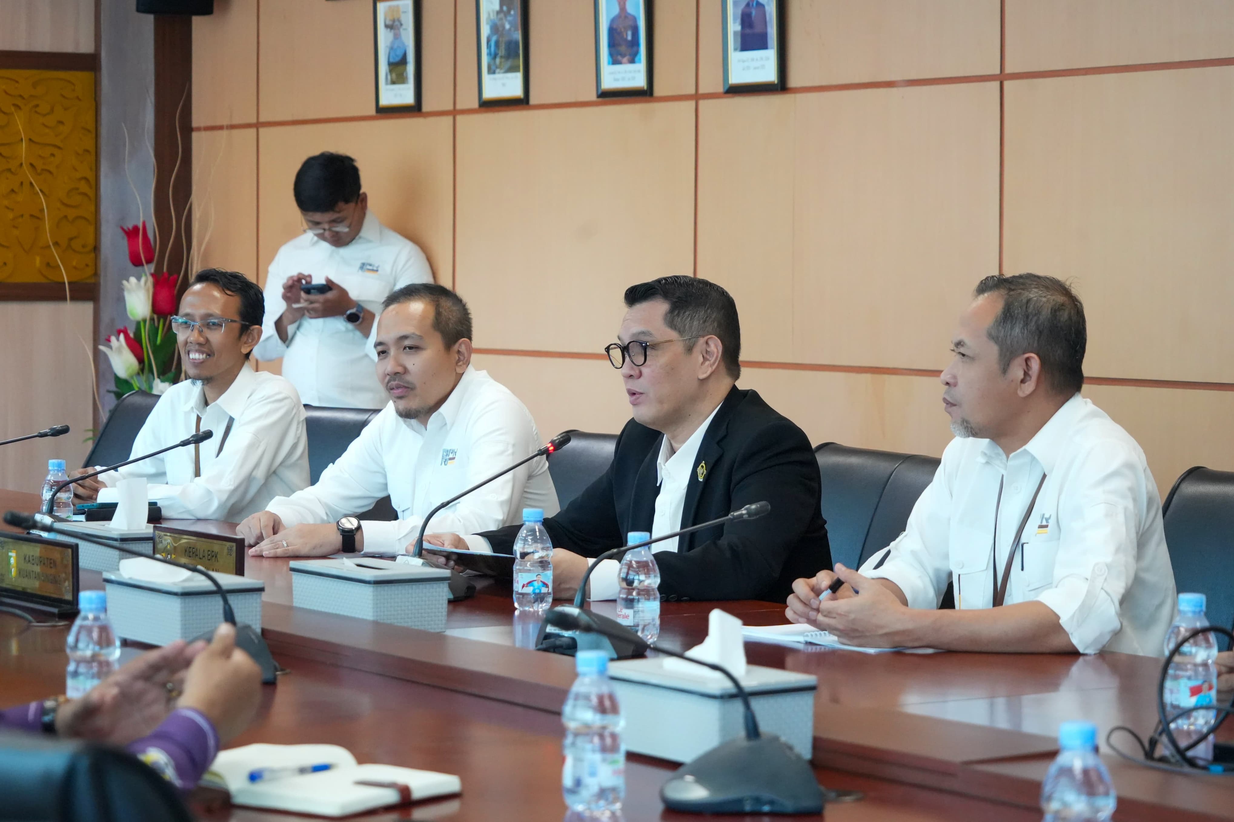 Bupati Suhardiman didampingi Sekda Kuansing Zulkarnain, M. Si, Kepala BPKAD Japrinaldi, AP., M. IP, Kepala Bappeda Litbang Hendra Roza., S. Si, Inspektur, Drs. Rustam, Kepala Bapenda Dr. Masrul Hakim, Kepala BKPP Muradi, M. Si, Kabag Umum Deswan Antoni, SE, Sekretaris Kominfo H Heri Antoni, M. Si, dan Kabag Ortal Masyita Holia Citra, SSTP., M.Si