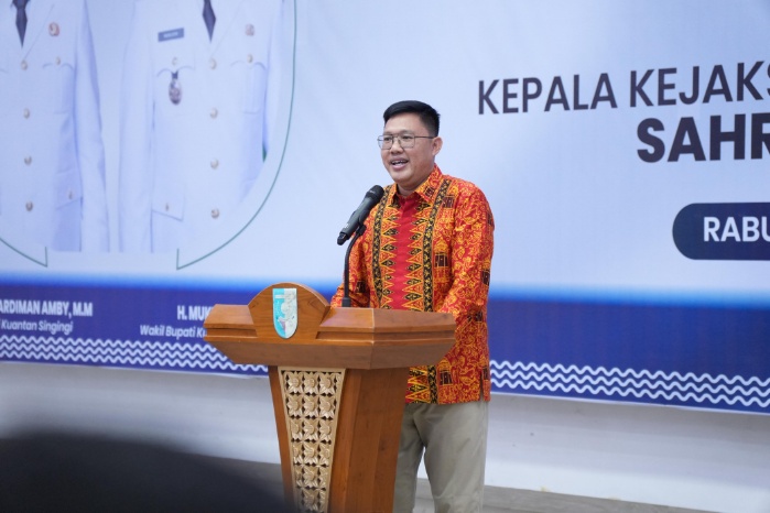 Dengan balutan batik khas Kuansing yang berwarna merah menyala, Sahroni berbicara dengan suara mantap namun sarat emosi. Ia menatap hadirin satu per satu — para pejabat, tokoh adat, dan koleganya di Forkopimda — seolah ingin mengabadikan setiap wajah dalam ingatannya.